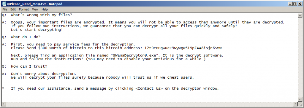 Ransom note from “WannaCry” ransomware. Image credit: Avast