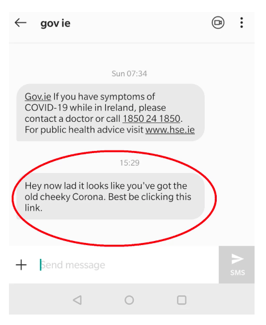 It looks like it came from the official message service of the Irish government. But it’s a fake.