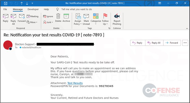 Security company Cofense says this email pretends to be a notification of your test results from ‘Doctors Support’.