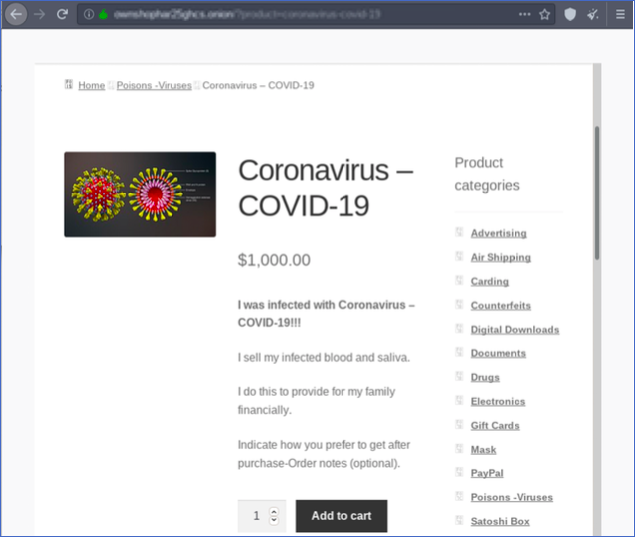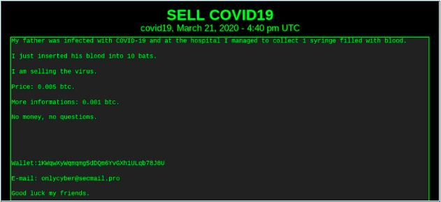 Their owner, offering up the coronavirus for sale on the dark web.
