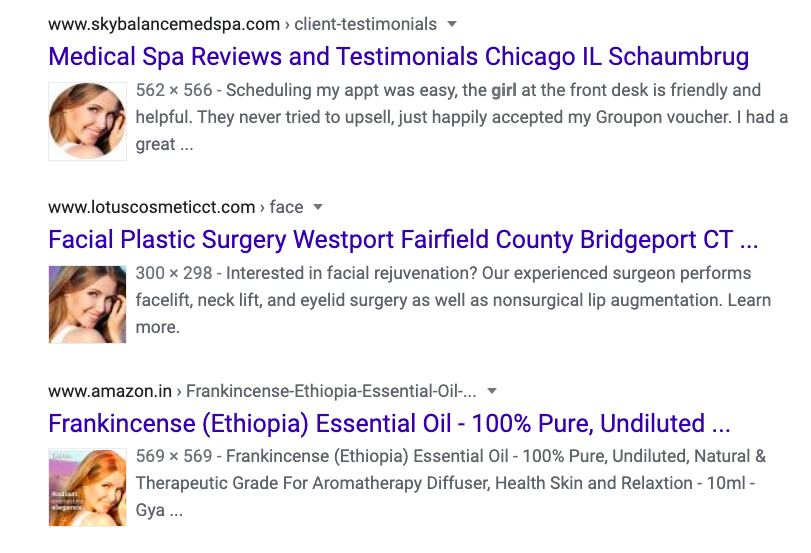 But if you search her picture on Google, you will see a number of other ads using the same image.