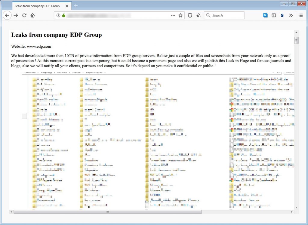 “EDP is working with the authorities, that were immediately notified of the attack, in order to identify the origin and anatomy of the attack,” the statement said.