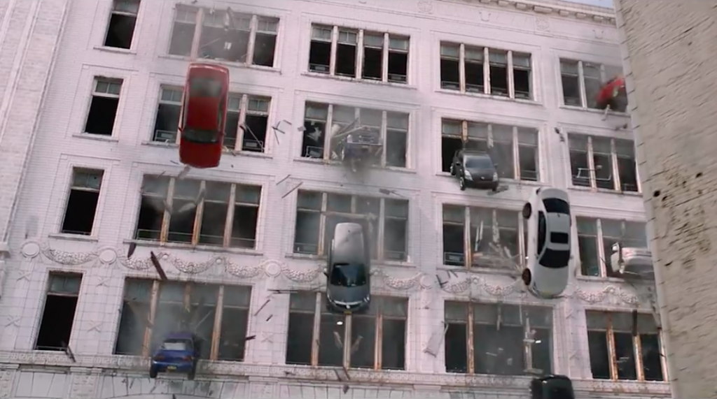Attackers “make it rain” cars in “The Fate of the Furious.” Image credit: “The Fate of the Furious” Universal Pictures