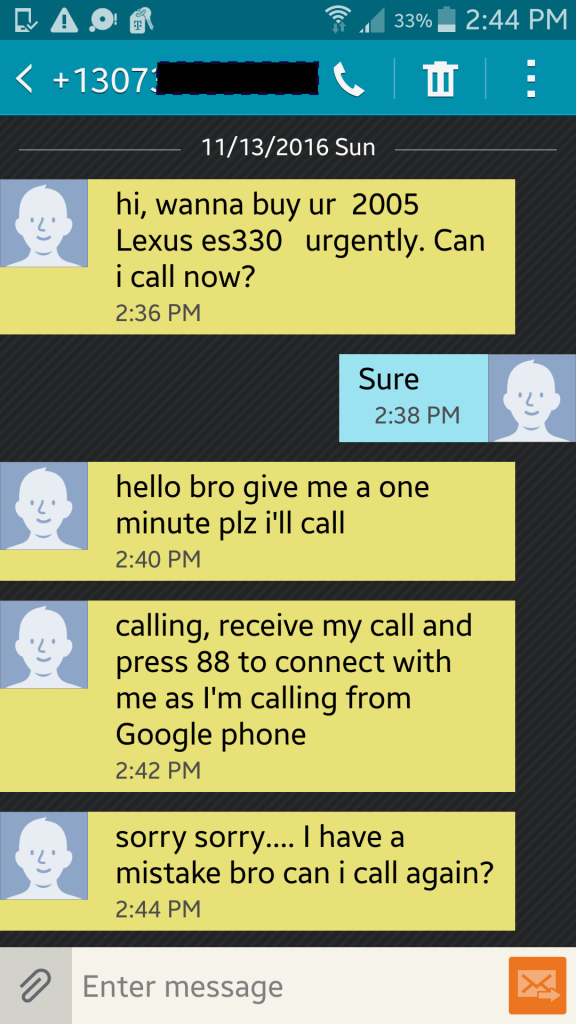 “I have dealt with buyers before who had to use special phone devices because of physical handicaps, so it was easy for me to fall for this one,” wrote another. “I won’t fall for it again, and will warn all my friends.”