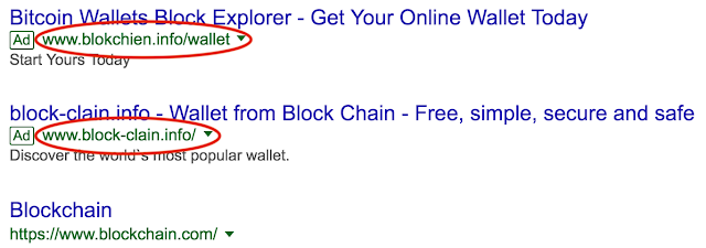 Let’s say you do a Google search for “blockchain” or “bitcoin wallet.”