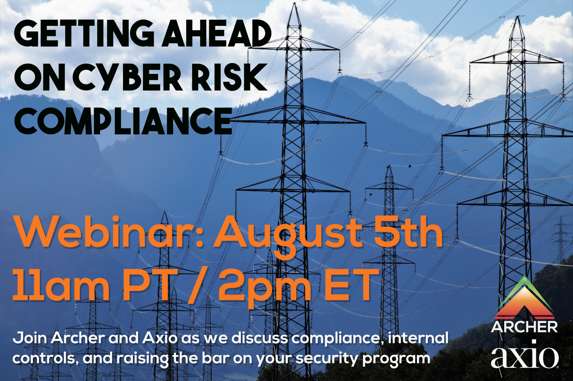 2020-8-52020-8-5America/Los_Angeles Getting Ahead on Cyber Risk Compliance Join Archer and Axio as we discuss compliance, controls and how to raise the bar on your security program. Webinar (See description for details)