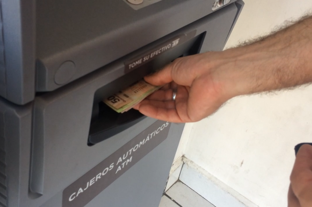 A customer takes money from an ATM in Mexico. Image credit: Archer News
