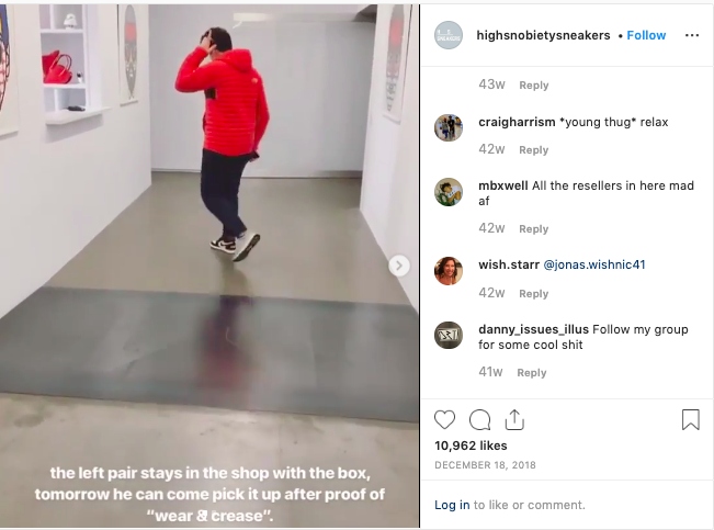 Instagram post reportedly showing a sneaker store that requires a two-day shoe purchase. Image: Instagram/highsnobietysneakers