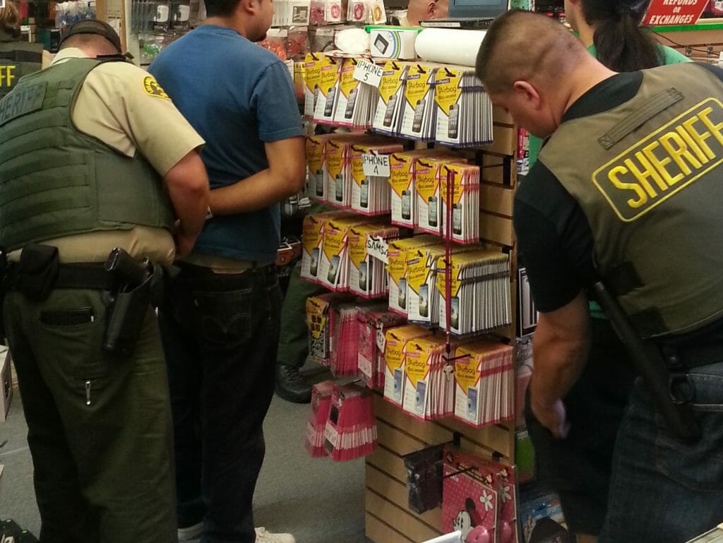 Law enforcement serves arrest warrants at a location selling fake Apple chargers in Los Angeles. Image credit: UL