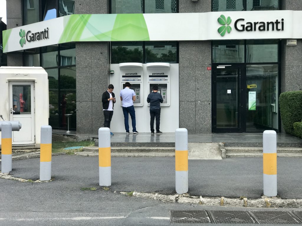Customers use ATMs at Garanti BBVA bank in Istanbul, Turkey. Image: Istanbul Image