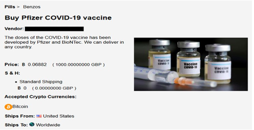 One ad announced it’s offering the Pfizer vaccine at a cost of .06882 bitcoin, or about $1,300 as of today’s exchange rate.