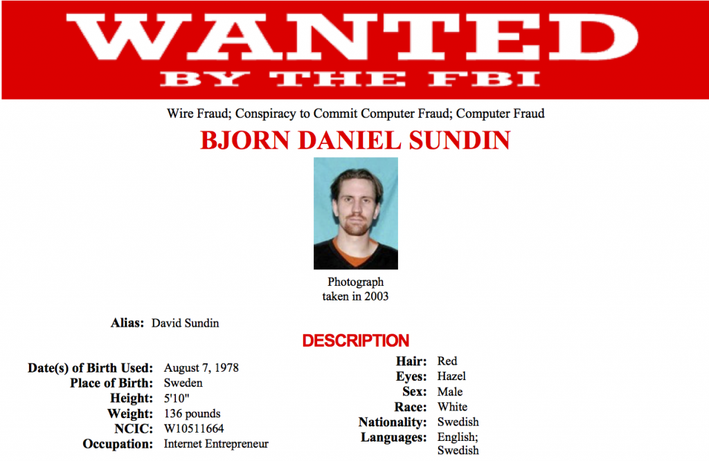Listed as five-foot-ten and 136 pounds on the FBI’s most wanted cyber criminals page, Innovative Marketing’s Chief Technology Officer Sundin would be slight-of-build, a 38-year-old last pictured with red hair and a goatee.
